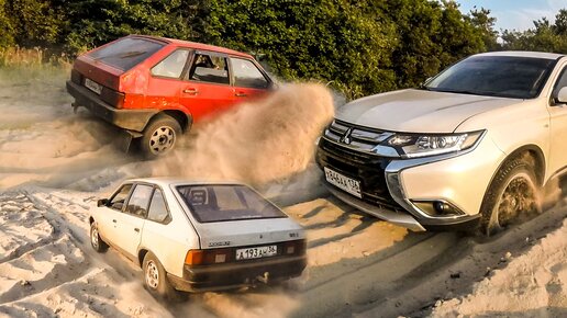 Девятка, Москвич 2141 и Outlander в песке! Таз напоказ
