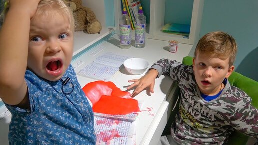 София Вымазала СЛАЙМОМ тетради Брата. Слайм в Лицо. Софунья Шалунья