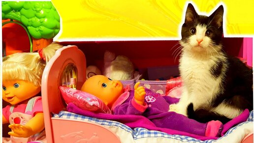 Кошка баюкает Пупсика Беби Бон и прячется в новом домике - ящике для игрушек ♥ Кошка Яся и Пупсик