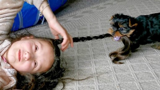Играю с Собакой - Щенок тянет Алис за Косичку | Новый Питомец - Йоркширский Терьер