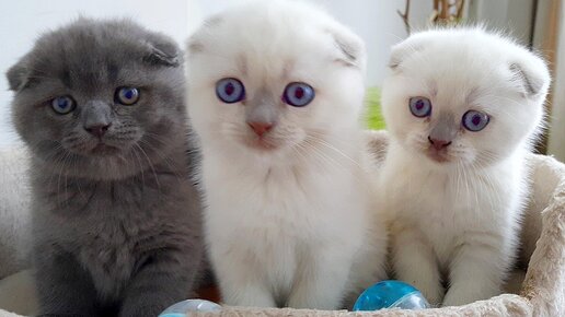 Маленькие Котята и Шотландские Вислоухие Кошки! Котята подросли и хотят играть! Видео про котят😻