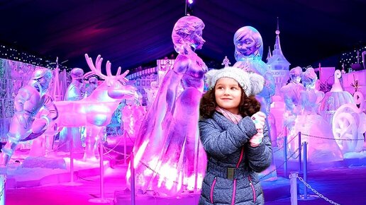 Все герои Диснея изо льда! Принцессы Диснея / Алис идет на выставку ледовых фигур