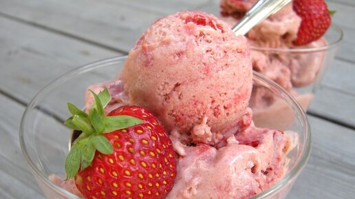 Лето продолжается. Клубнично-банановое мороженое на сливках. Любимое лакомство для детей и взрослых.