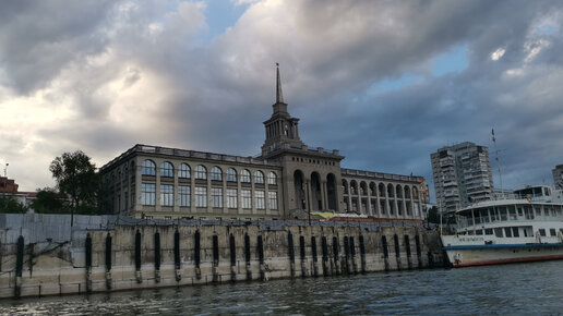 Речной вокзал и набережная. Город Красноярск, вид с Енисея