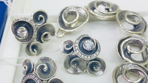Браслет, кольцо и серьги из серебра. Стильное украшение. Завод Вега.