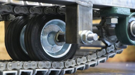 Собрал модуль из профильной трубы на подшипниках с гусеницей.