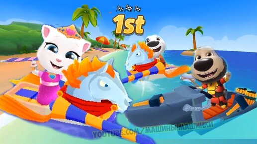 ГОВОРЯЩИЙ ТОМ АКВАБАЙК #8 Анджела Хэнк Бен и Джинджер мультик игра для детей Talking Tom Jetski 2