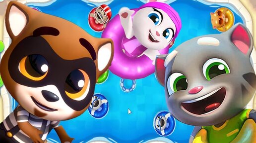 ГОВОРЯЩИЙ ТОМ АКВАПАРК #10 Анджела Хэнк Бен и Джинджер мультик игра видео для детей Talking Tom Pool