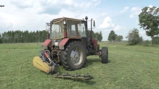 Беларус ТТР-401М косит пастбище роторной косилкой
