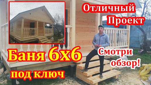 Одноэтажная баня из бруса 6х6 под ключ с открытой террасой от СК Доминика