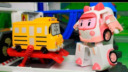 Мультики про машинки с игрушками Робокар Поли и его друзья - Пробитый бензобак и Эмбер