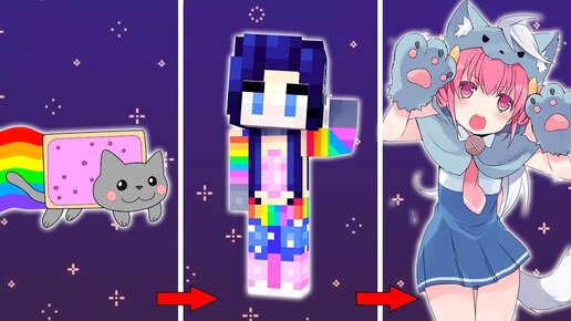 🌈КАК МЕНЯЛАСЬ ДЕВУШКА КОШКА НЯН КЭТ МОБ МАЙНКРАФТ!