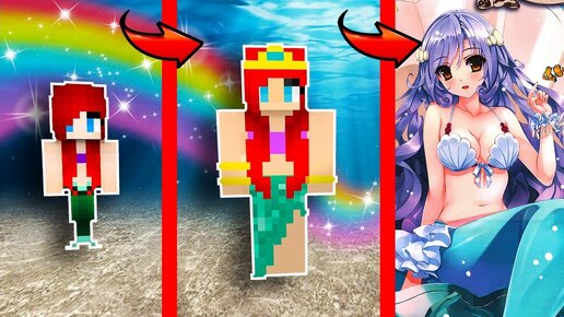 КАК МЕНЯЛАСЬ ДЕВУШКА РУСАЛКА АНИМЕ И ЕЁ ЖИЗНЕННЫЙ ЦИКЛ МОРСКАЯ РУСАЛКА АРИЭЛЬ В МАЙНКРАФТ ЭВОЛЮЦИЯ