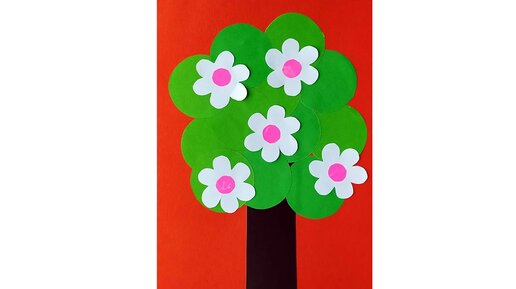 Дерево. Аппликация из цветной бумаги для детей. Поделки. Подарок маме. Яблоня.
