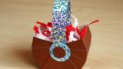 Как сделать корзину для подарка. Поделка из картона и цветной бумаги своими руками.