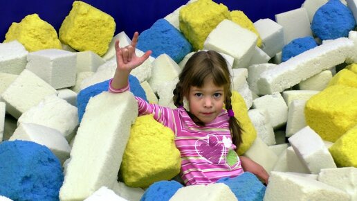 Развлекательный батутный центр Ижевск. Дети прыгают на батуте, в поролоновую яму.
