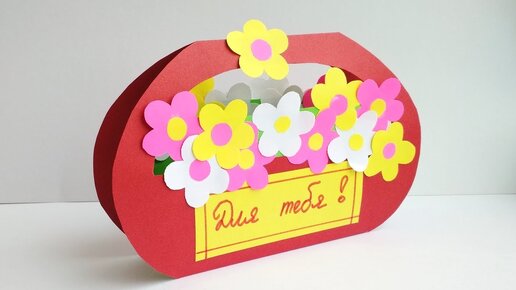 Корзина с цветами. Поделки из бумаги. Подарок маме на 8 марта.