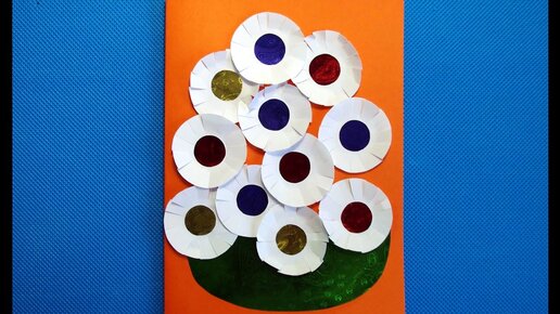 Белые цветы. Аппликация. Поделка из бумаги для детей 6, 7, 8 и 9 лет.