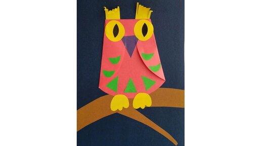 Сова. Аппликация из цветной бумаги. Детские поделки животных в школу. Птица.