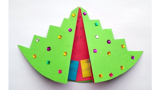 Елочка. Открытка на новый год из цветной бумаги своими руками. Поделки. 2021