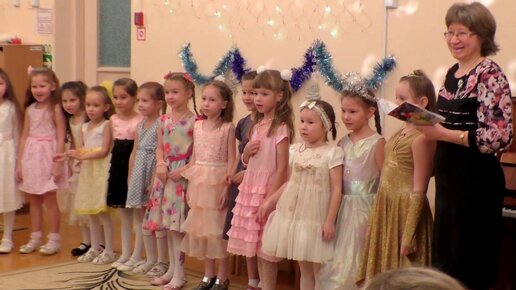 Новогодний утренник в подготовительной группе детского сада. Дети читают стихи деду Морозу.