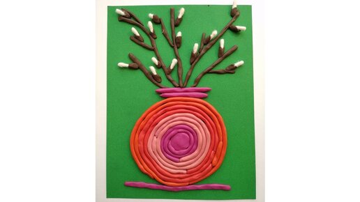 Аппликация из пластилина. Поделка на Пасху 1, 2, 3 и 4 класс школы. Ваза с вербой.