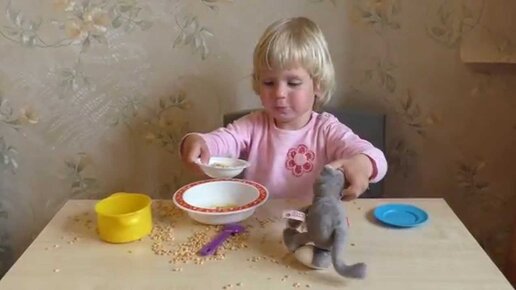 Игры с детской посудой, горохом. Развитие мелкой моторики у детей. Чем занять ребенка дома.