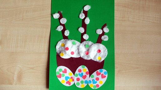 Поделки к Пасхе своими руками. Аппликация из цветной бумаги и ватных дисков.