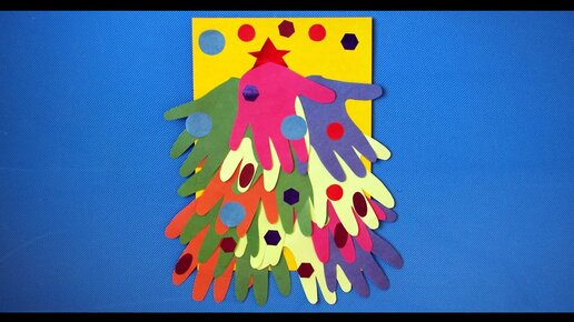 Елка из ладошек. Аппликация из цветной бумаги. Зимние поделки в садик.