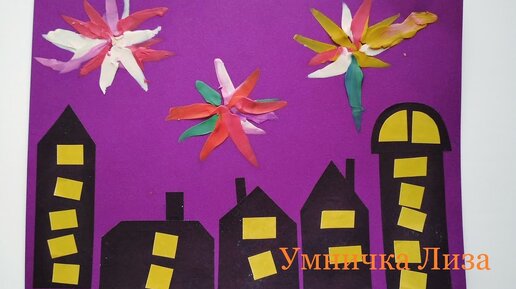 Салют Победы. Аппликация из бумаги и пластилина. Поделка на 9 мая.