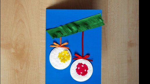 Как сделать новогоднюю поделку. Аппликация из цветной бумаги и ватных дисков на НГ 2019.