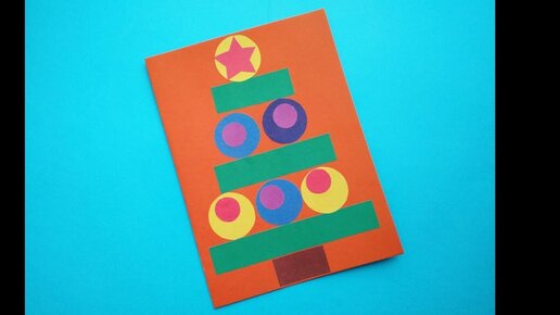 Елочка. Открытка на новый год. Аппликация из бумаги. Детские поделки.
