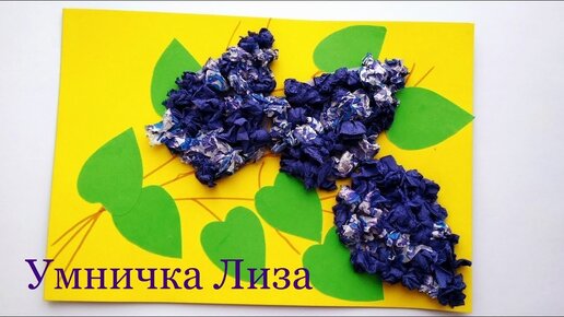 Сирень. Аппликация из цветной бумаги и салфеток. Весенние поделки.