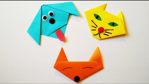 Как сделать кошку, собаку и лису из бумаги. Легкое оригами без клея и ножниц. Поделки для детей 5, 6 и 7 лет
