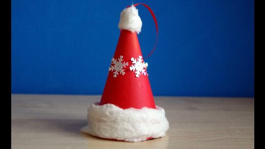 Шапка деда Мороза. Как сделать новогоднее елочное украшение. Зимние поделки. Игрушка.