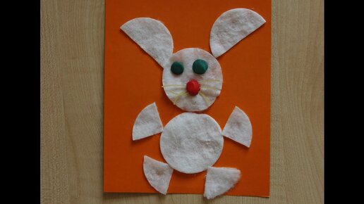 Заяц. Аппликация для детей. Поделки из ватных дисков для малышей дома.