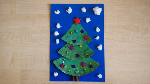 Елка. Аппликация из цветной бумаги на новый год. Новогодние поделки.