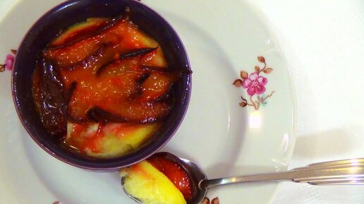 Творожное суфле с карамелизированными сливами