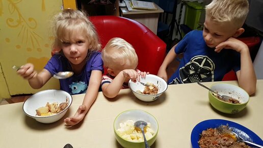 Утро, собираемся в школу, завтрак вкусным нежным блюдом
