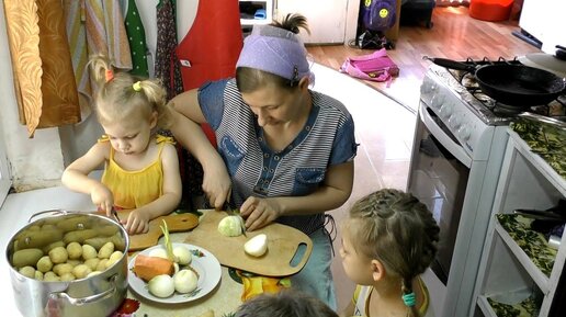 Обзор покупок и приготовление завтрака.