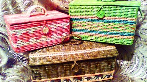 ▬► Как сплести сундучок из газетных трубочек - II / How to weave paper Chest