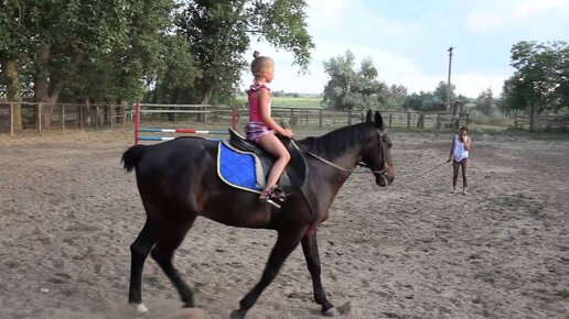 Алиса пробует шаг рысь на коне