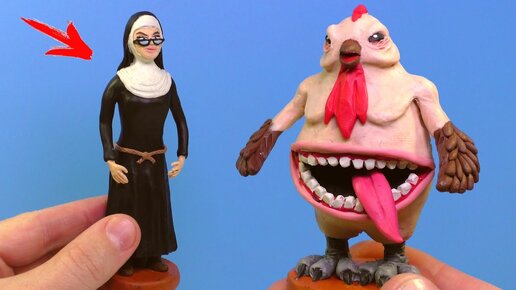 Злая МОНАХИНЯ 2 и Курица Мутант из игры Evil Nun 2: Origins | Видео Лепка