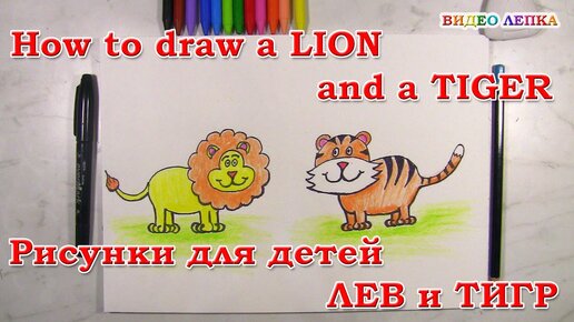 КАК Нарисовать. Рисуем животных. Лев и Тигр