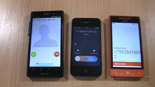 Android (Sony Xperia Ion LT28H) VS Htc 8S(Windows Phone 8.0) vs Iphone (iOS 9.3.6 )Triple incoming
