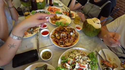 Дорвались. Объедаемся морепродуктами в Тайланде - креветки и кальмары за копейки на местном рынке