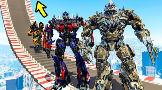 КАК ДАЛЕКО ТРАНСФОРМЕРЫ СМОГУТ ЗАБРАТЬСЯ ПО СТУПЕНЬКАМ ЛЕСТНИЦЫ ЭКСПЕРИМЕНТ ГТА 5 МОДЫ GTA 5 ВИДЕО