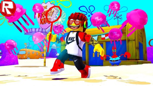 Роблокс Работа в Красти Крабс и Поймать Медузу Для Спанч Боба Roblox Видео Веселая Игра Для Детей
