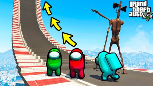 КАК ДАЛЕКО АМОНГ АС И СИРЕНОГОЛОВЫЙ СМОЖЕТ ЗАБРАТЬ ПО СТУПЕНЬКАМ ГТА 5 МОДЫ! ОБЗОР МОДА В GTA 5!