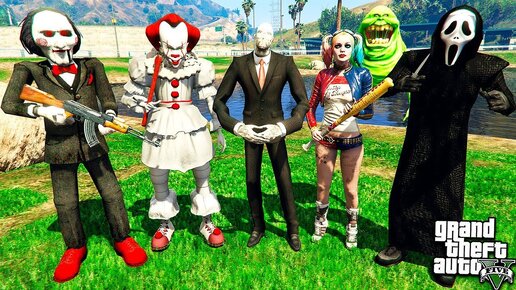 Слендермен и Крик с Клоуном ОНО Ограбили Банк в Гта 5 Моды! Обзор Мода в Gta 5! Игры Гта Видео Mods